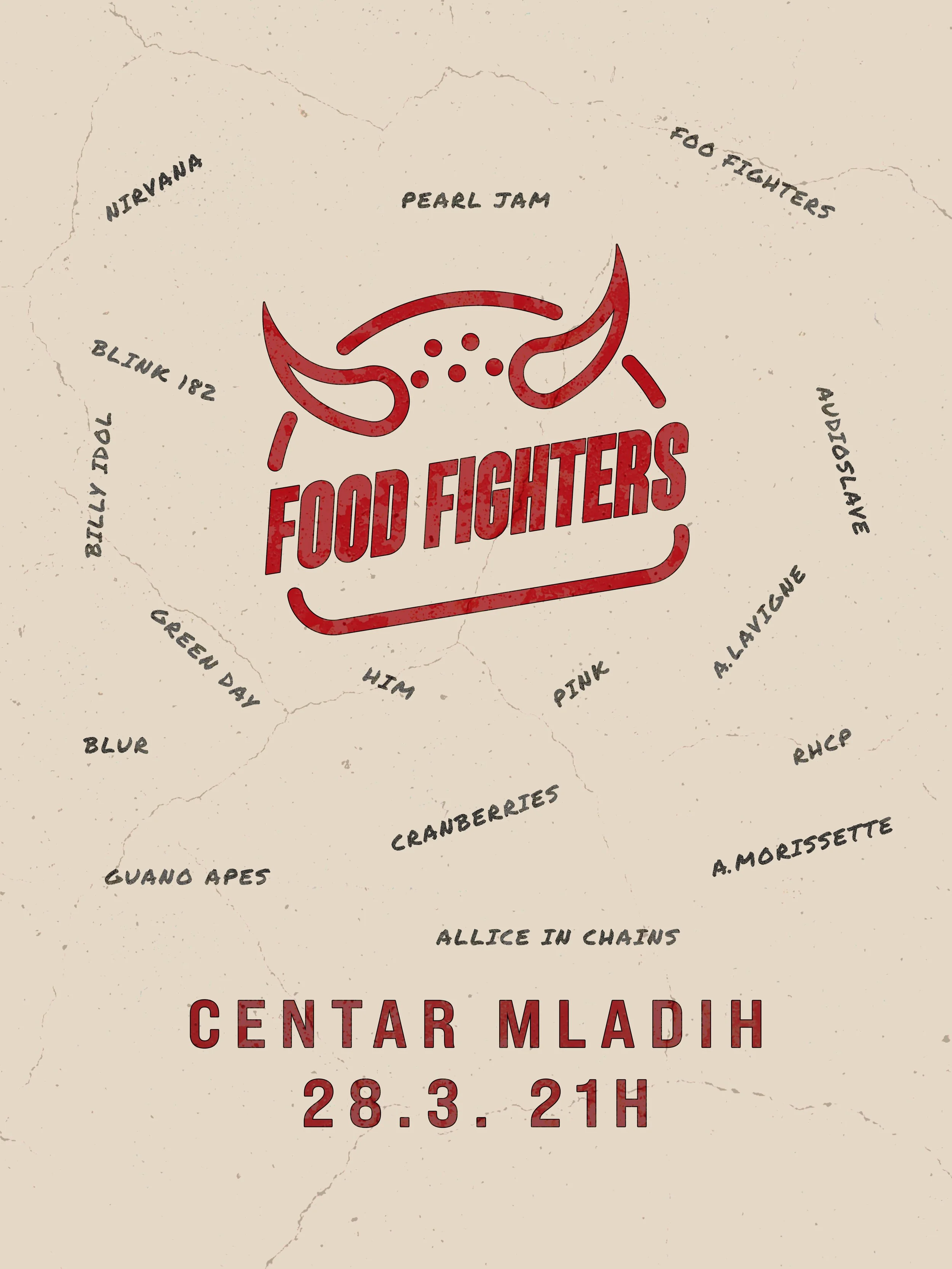 Food Fighters, slavonskobrodski cover bend specijaliziran za hitove 80-ih, 90-ih i 00-ih, donosi vatrenu svirku u Centar Mladih 28. ožujka 2026. – od Foo Fightersa preko Pearl Jamma, Green Daya, Blink-182, Cranberriesa do Alanis Morissette i još mnogo toga.